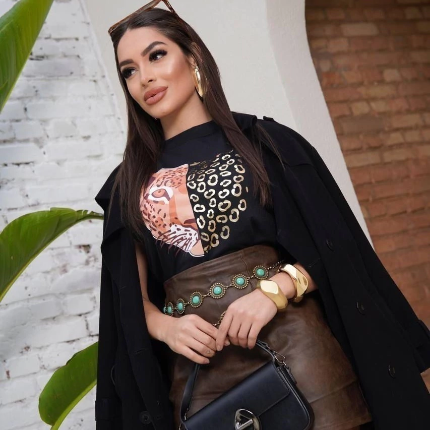 Com uma estampa exclusiva nas cores preta e marrom, ela traz um charme sutil e sofisticado, perfeita para quem busca um look moderno e versátil. Seu corte impecável valoriza todos os tipos de corpo, garantindo caimento perfeito e conforto o dia inteiro.